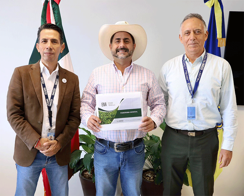 El 23 de septiembre, el coordinador estatal Jalisco, Nicolás Molina, se reunió con el titular de la Secretaría de Agricultura y Desarrollo Rural (SADER) de la entidad, Eduardo Ron, para presentarle el panorama general de la Encuesta Nacional Agropecuaria (ENA) 2025, cuyo objetivo consiste en proveer información estadística básica de las unidades de producción agropecuaria, a través de variables cuantitativas y cualitativas que muestran las características de todas las unidades de producción del país.