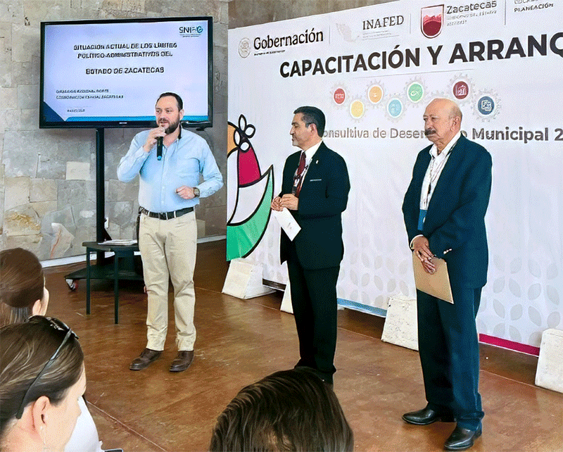El 6 de marzo, en el marco de las acciones derivadas de la segunda sesión ordinaria 2025 del Comité Estatal de Información Estadística y Geográfica (CEIEG), se presentó a las autoridades municipales del estado de Zacatecas información relacionada con los límites político-administrativos de la entidad. La exposición formó parte de un evento de capacitación dirigido a los gobiernos municipales, a solicitud de María Pérez, coordinadora estatal de Planeación y presidenta del CEIEG.