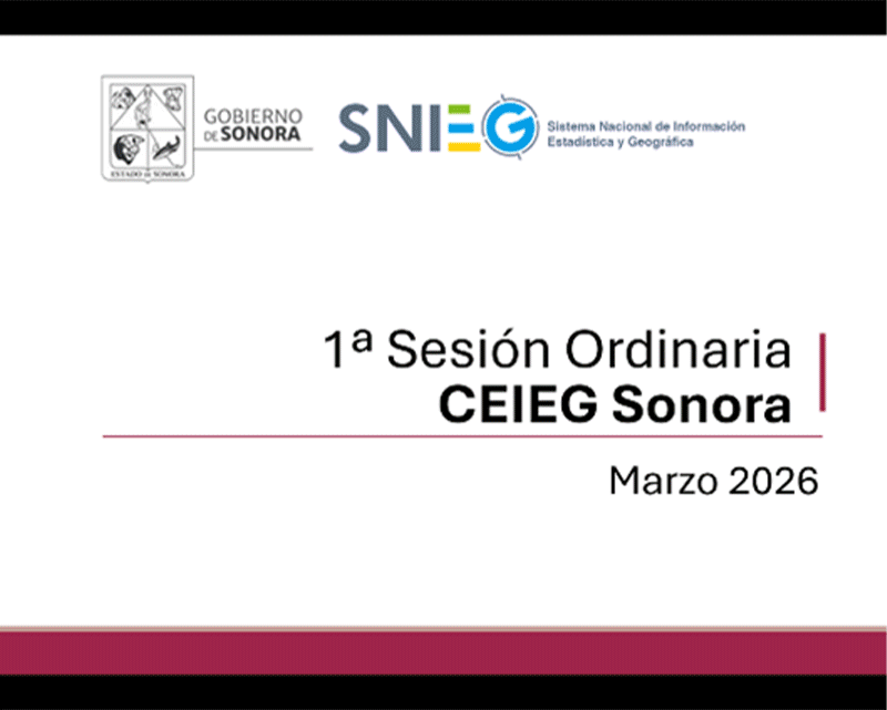 El 11 de marzo se realizó, en modalidad virtual, la primera sesión ordinaria 2026 del Comité Estatal de Información Estadística y Geográfica (CEIEG) del estado de Sonora, con el objetivo de presentar proyectos de información desarrollados en el marco del Comité.
